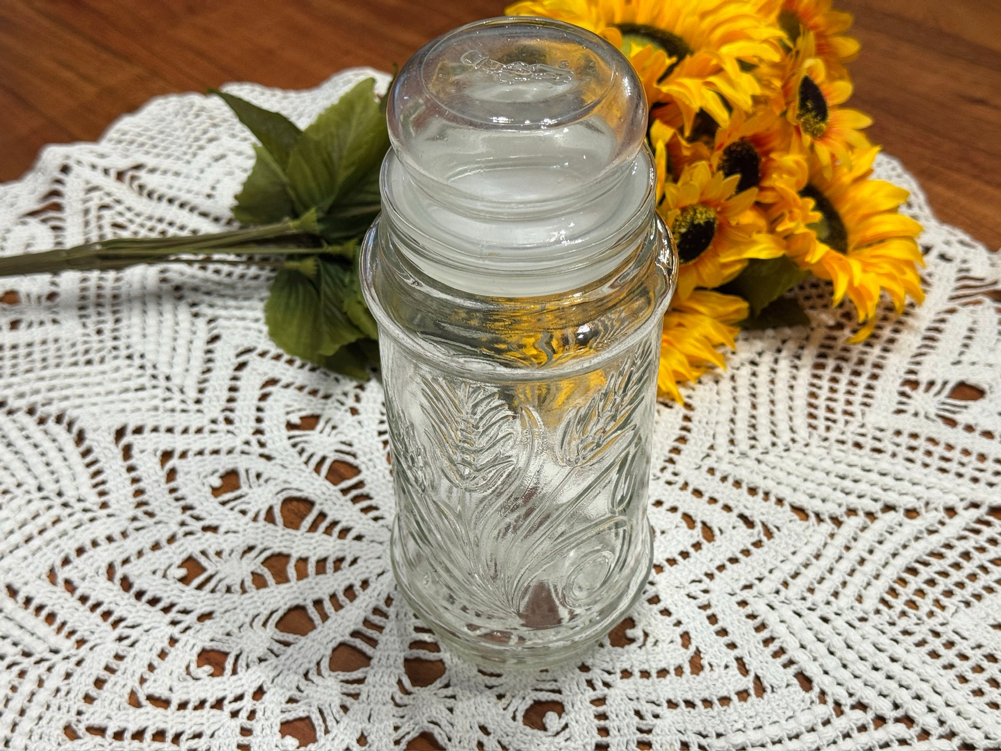 1982 Planters Mr. Peanut Clear Glass Jar Wheat Pattern