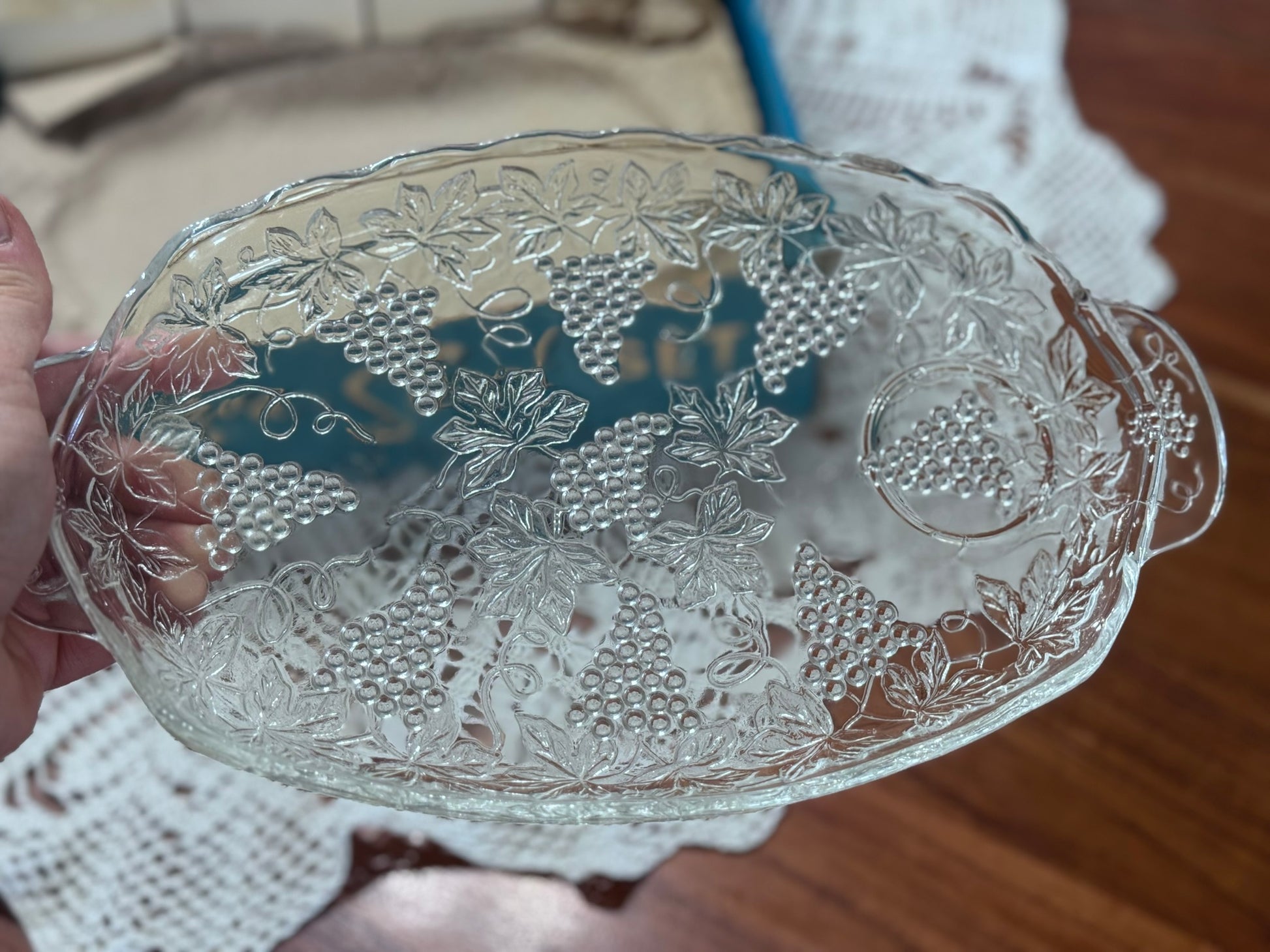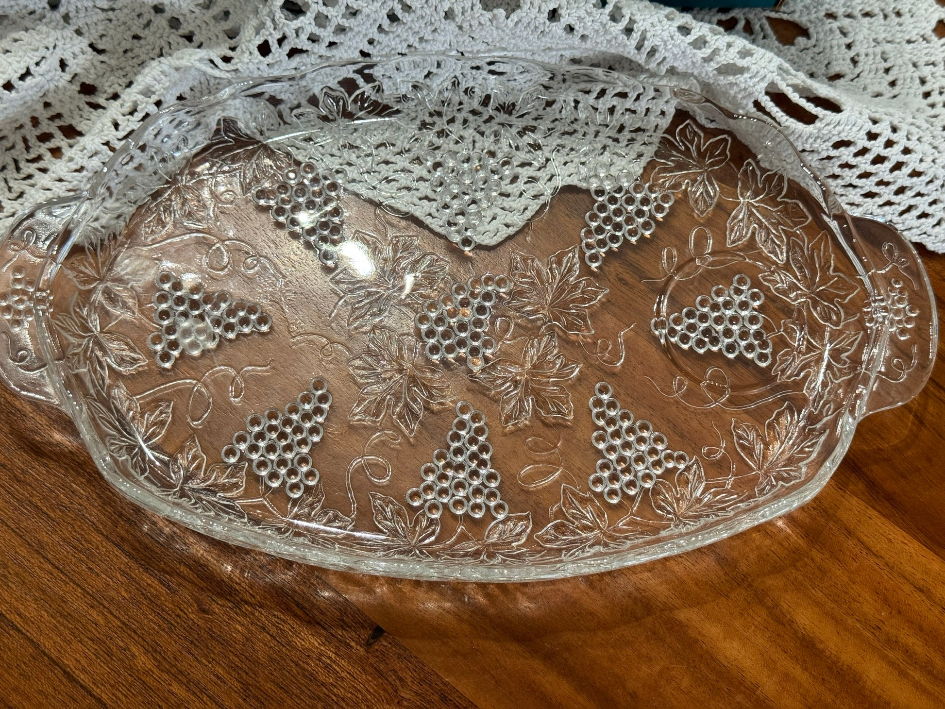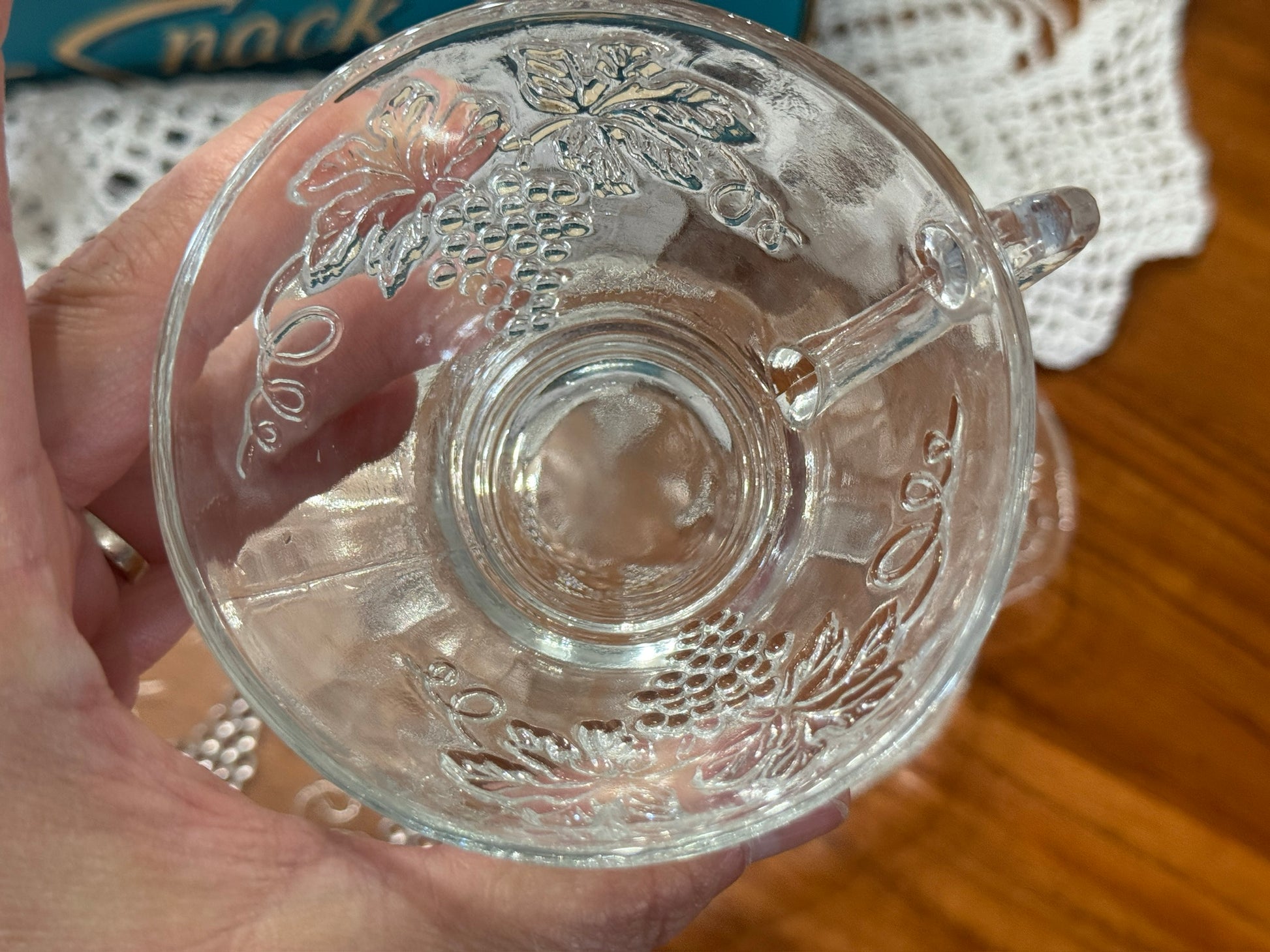 This is a lovely boxed and marked "Another Fine Anchor Hocking Product, 8 Piece Serva-Snack Set." A cute vintage addition to your collection and or serving ware.