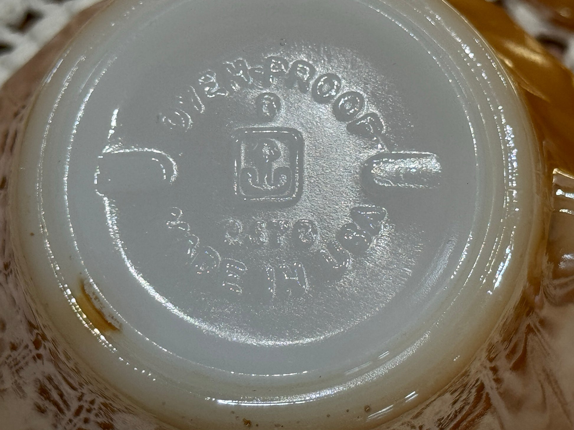 Anchor Hocking Fire King Peach Luster Swirl Demitasse Cup & Saucer