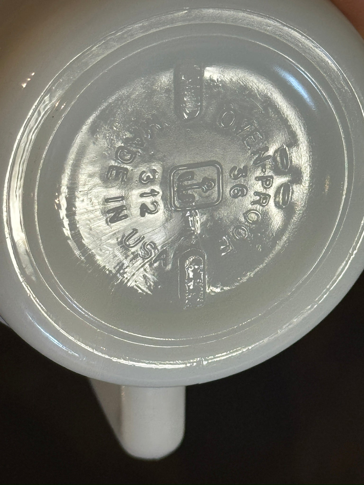 This is a lovely set of 2 (1 green, 1 blue/turquoise print) marked "Anchor Hocking, Oven Proof, Made In USA, #312" stackable Milk Glass 'Homestead' Mugs. A lovely addition to your collection and or serving/drink ware.