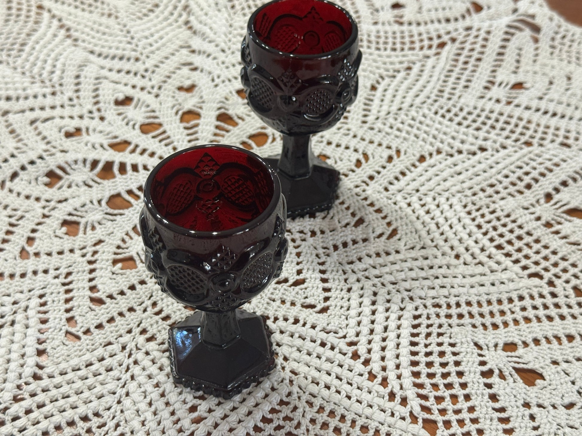This is a lovely set of 2 marked "Avon" Cape Cod Collection Wine Goblets. A cute set to add some vintage whimsy and charm to your collection and or serving ware.