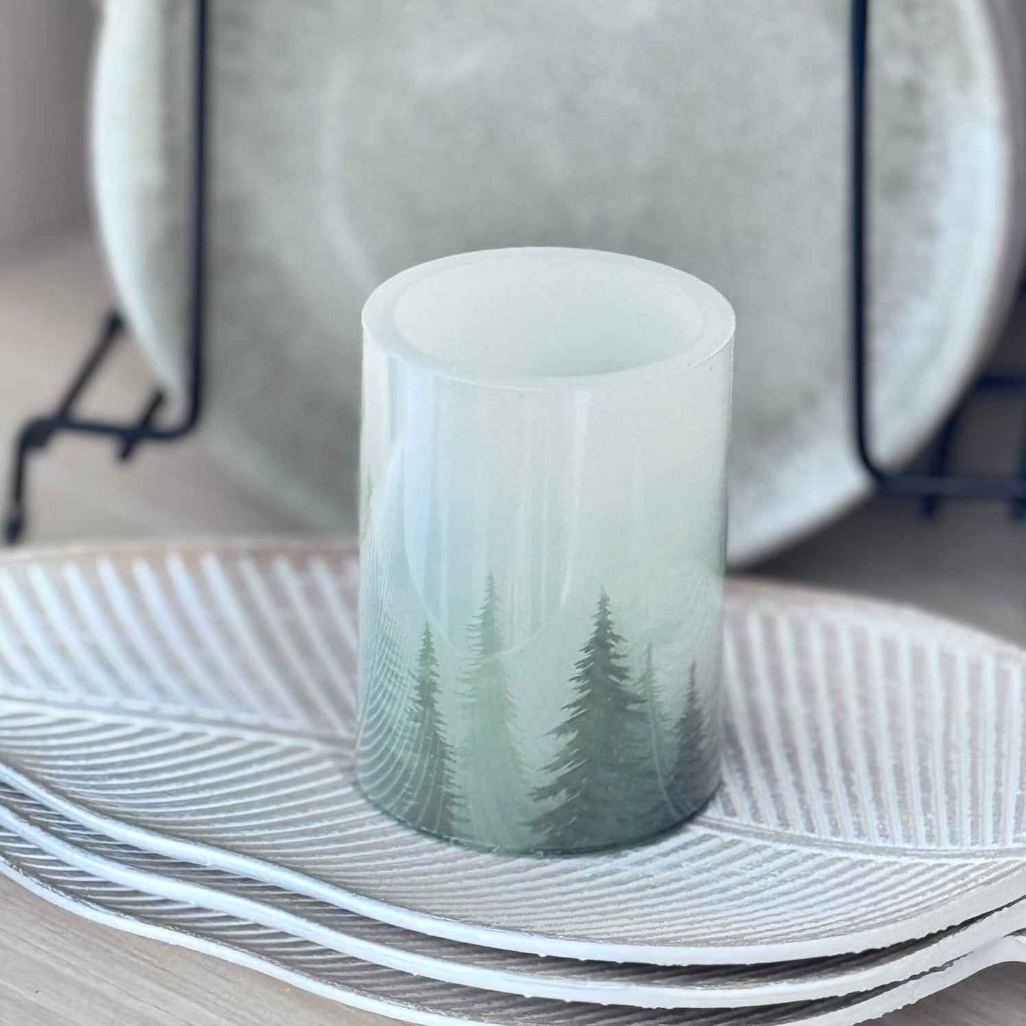 The Forest LED Candle measures 5 inches and is a great alternative to traditional candles, as it eliminates the need for an open flame. Its charming forest design adds a touch of elegance to any room.