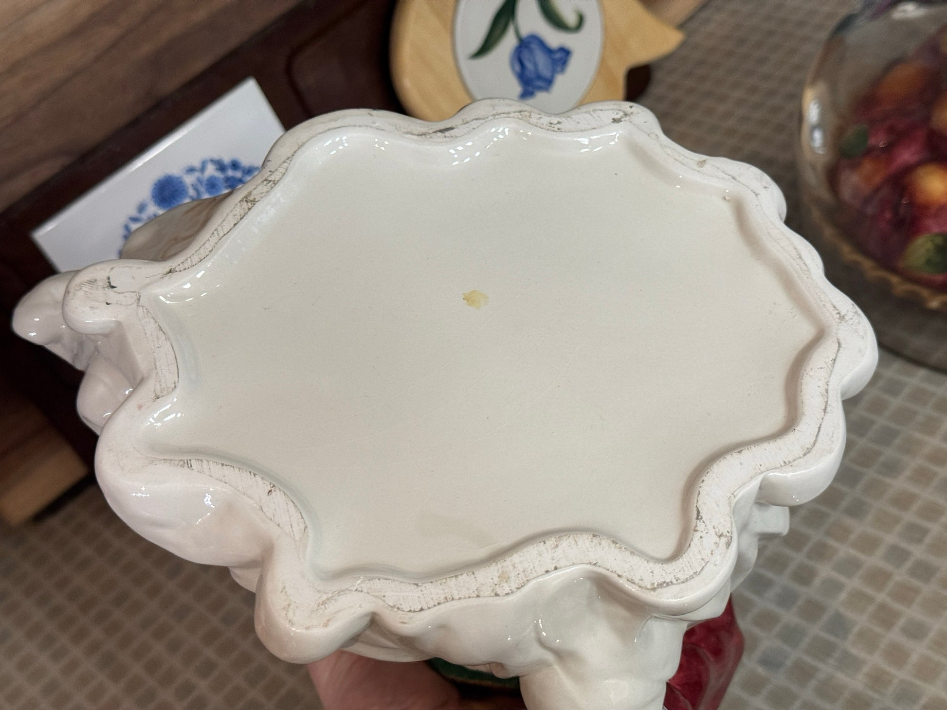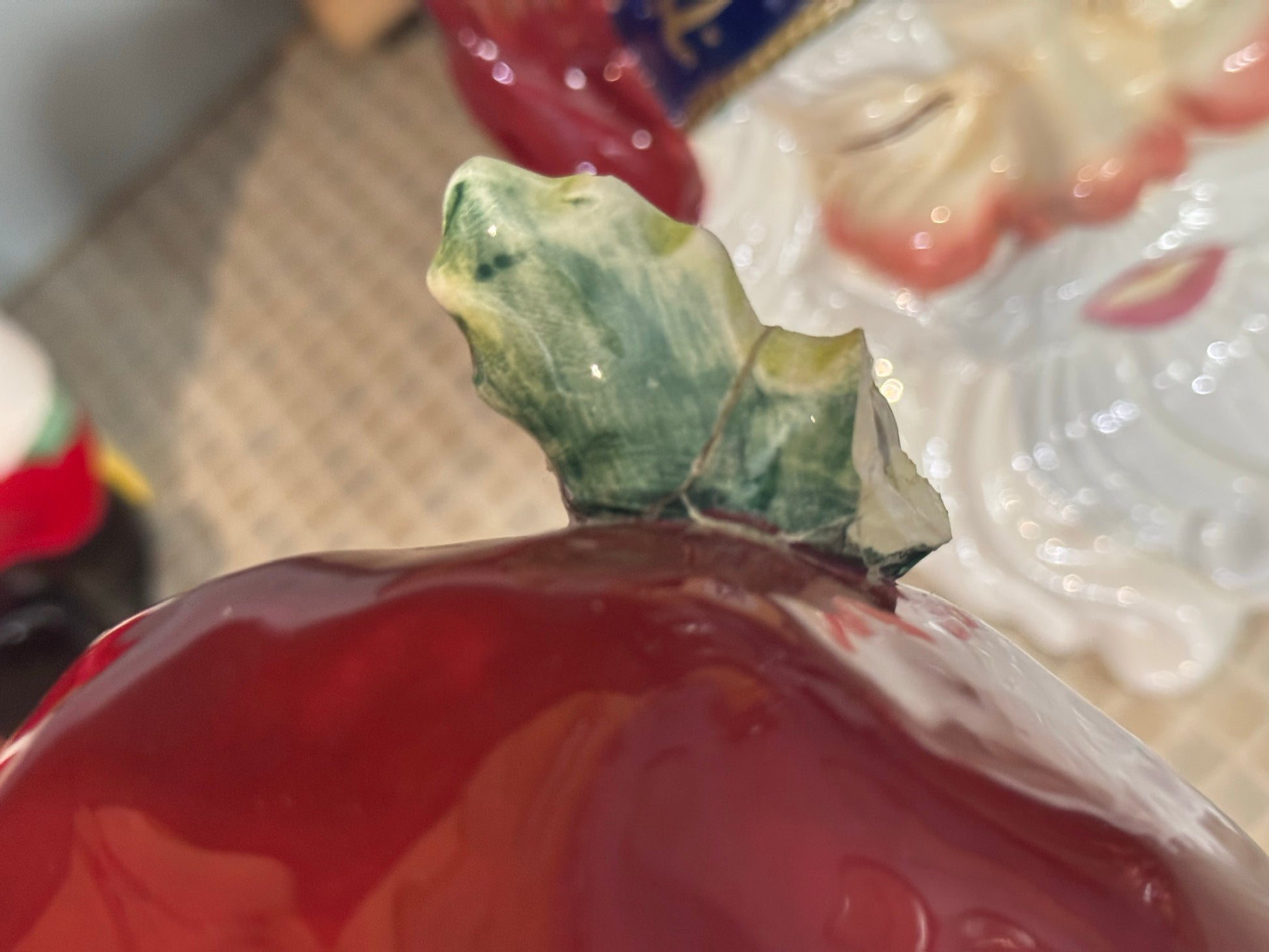There is a missing piece (broken) on the holly on Santa hat and it appears to also be glued (**see photos) - but does not take away from use and or appearance. Otherwise minor ware noted.