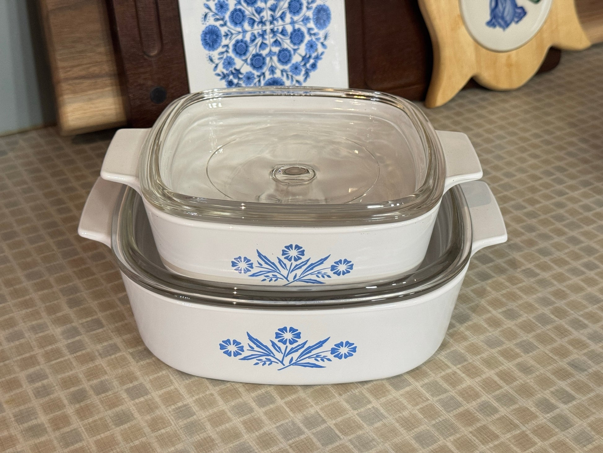 This is a lovely vintage marked "Corning Ware A-2-B 2 Liter, Pyrex A-9-C" Blue Cornflower Ceramic Casserole Dish with Pyrex Lid. The perfect addition to your collection and or serving/kitchen ware.