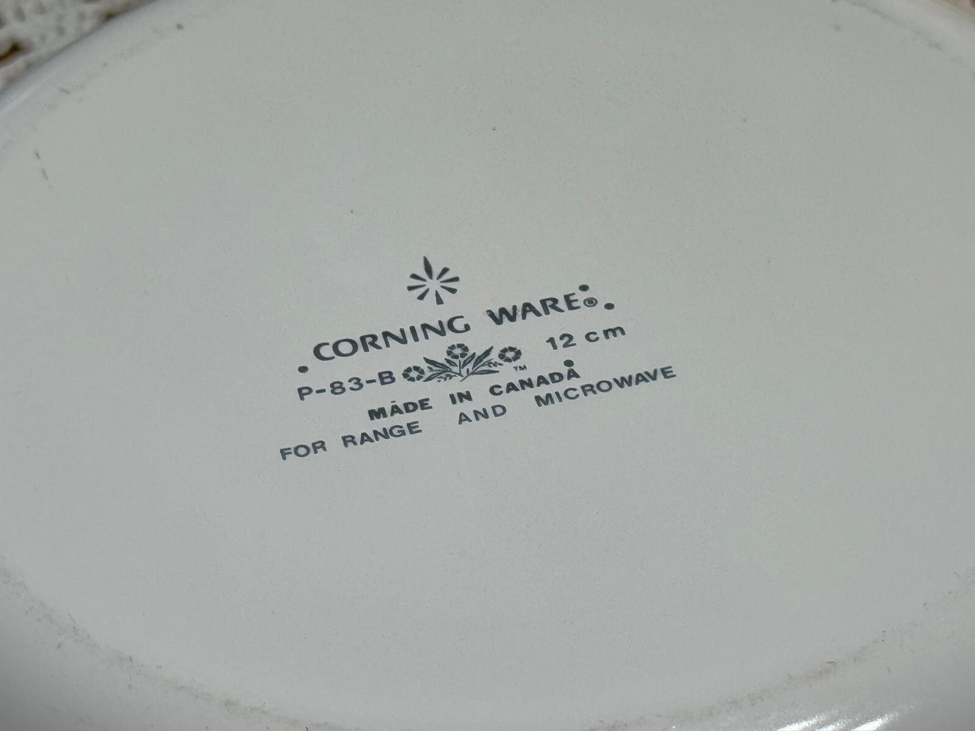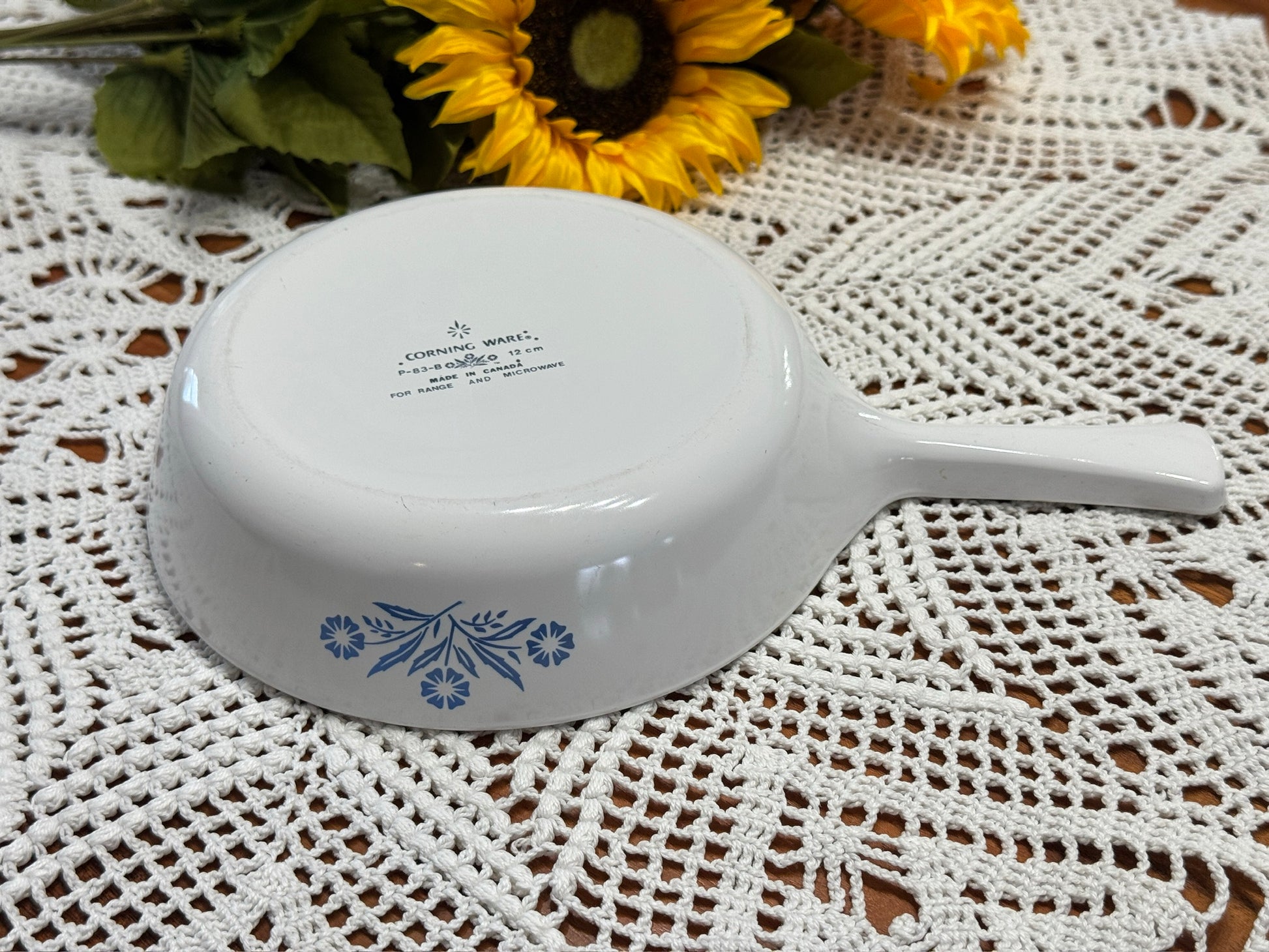 This is a lovely vintage 1960/70s marked "Corning Ware, P-83-B, 12 CM, Made In Canada, For Range and Microwave" Ceramic Blue Cornflower Skillet. A beautiful piece to add to your collection and or kitchen/serving ware.