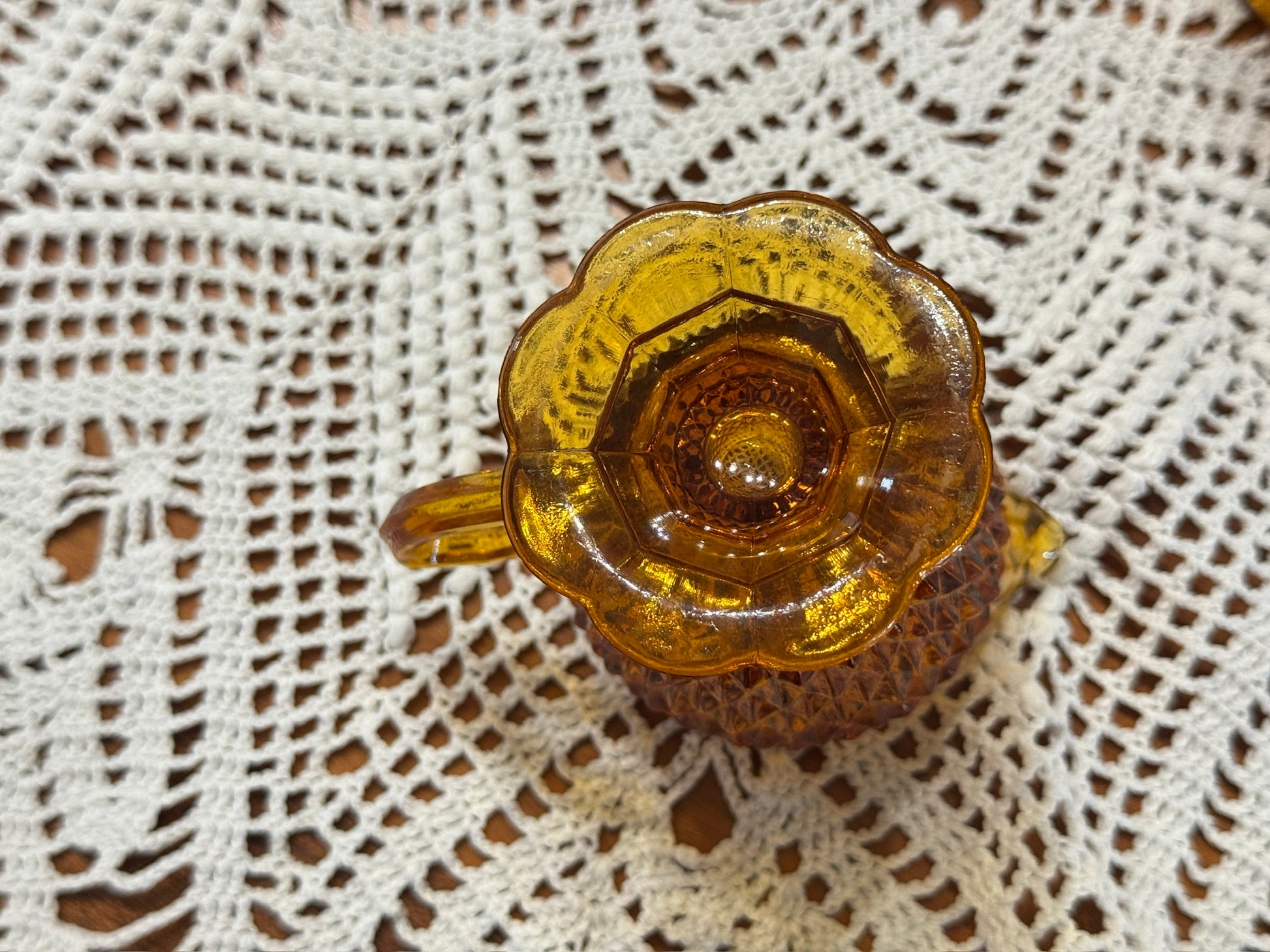Diamond Point Amber Creamer & Sugar Bowl Set