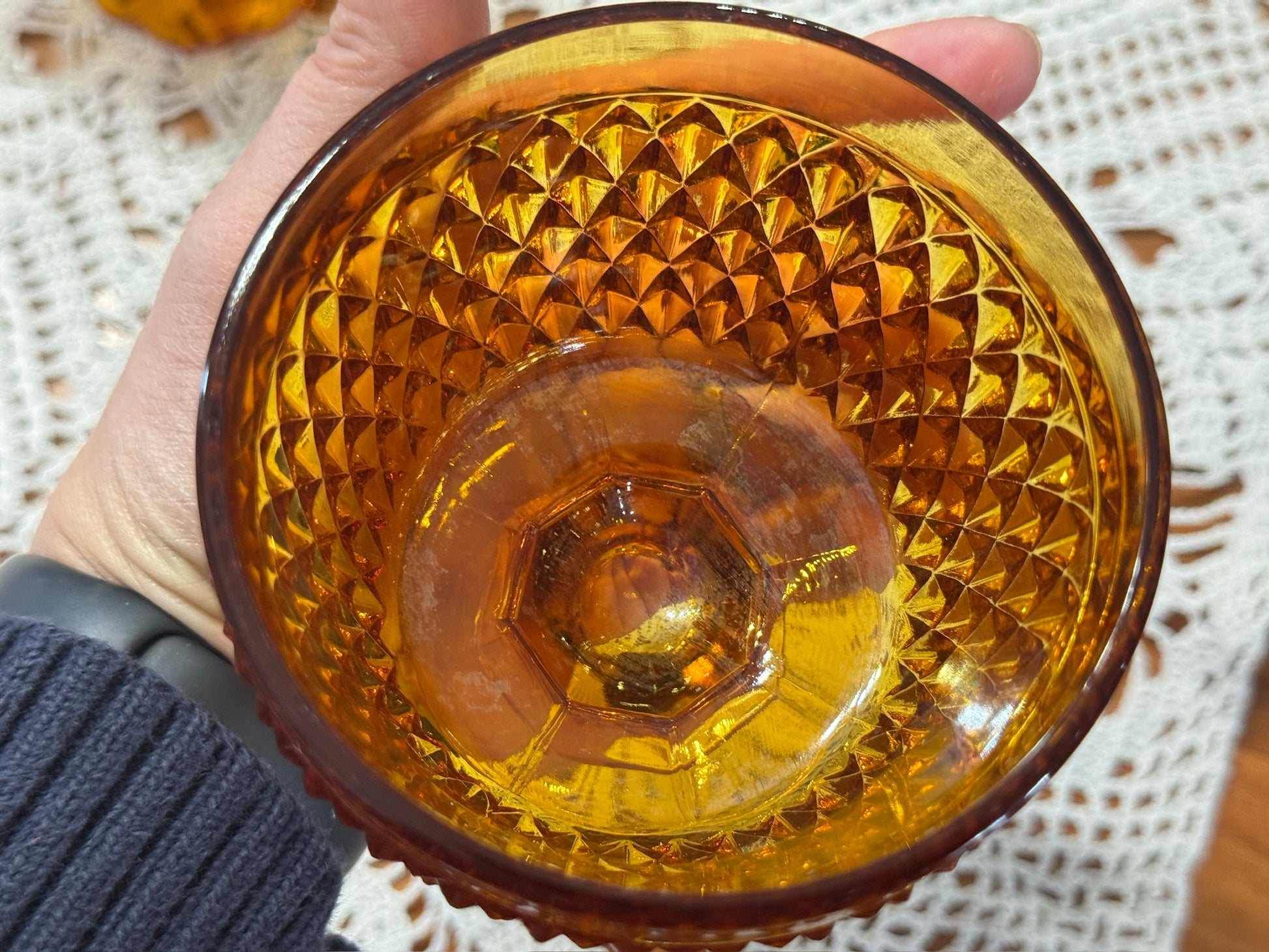 This is a beautiful Diamond Point Amber Cream & Sugar Bowl Set. This is an eye catching set that is both functional and offers vintage charm.