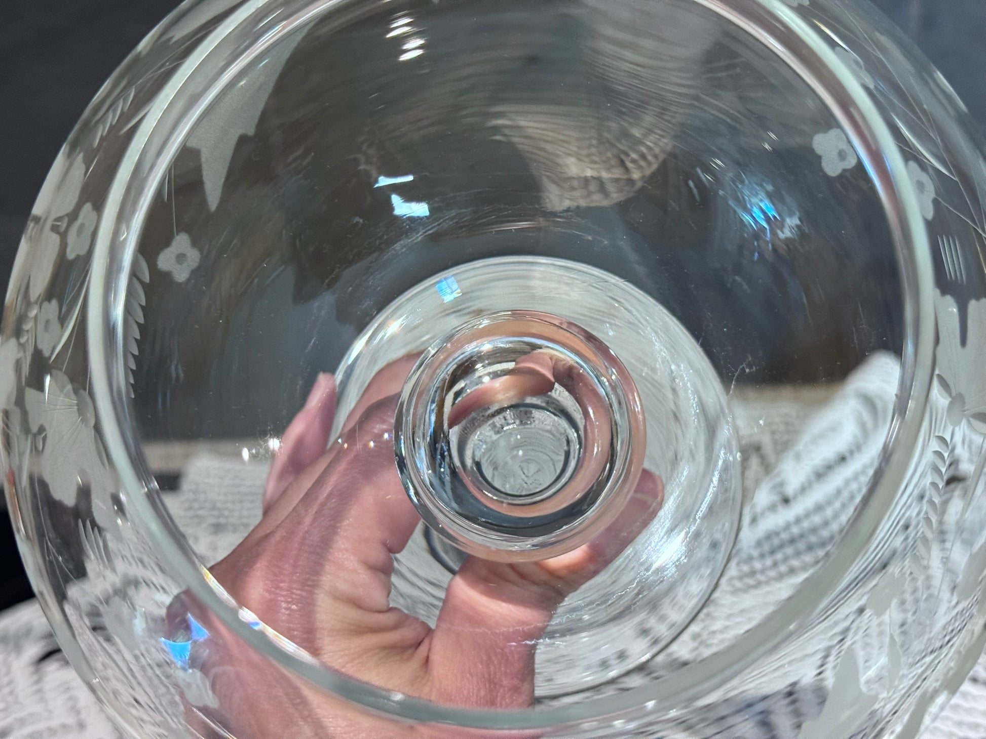 This is a lovely unmarked Etched Crystal Floral Candy Dish. A beautiful versatile piece that can be used for candy, cotton balls, cookies, candles, florals and or a stand alone decor piece.