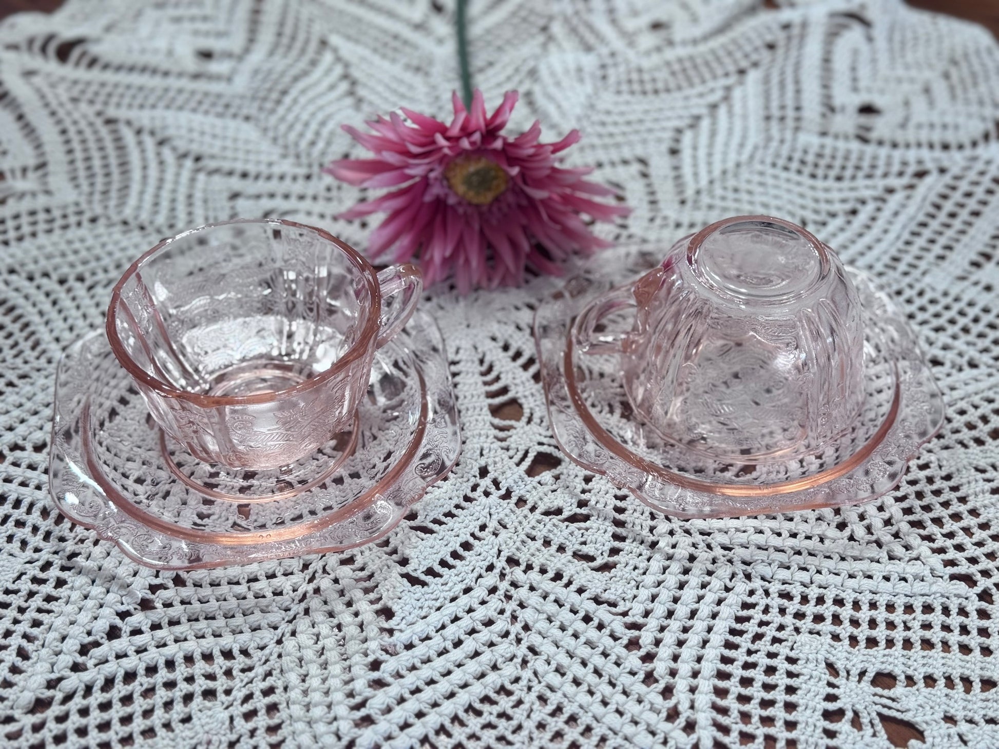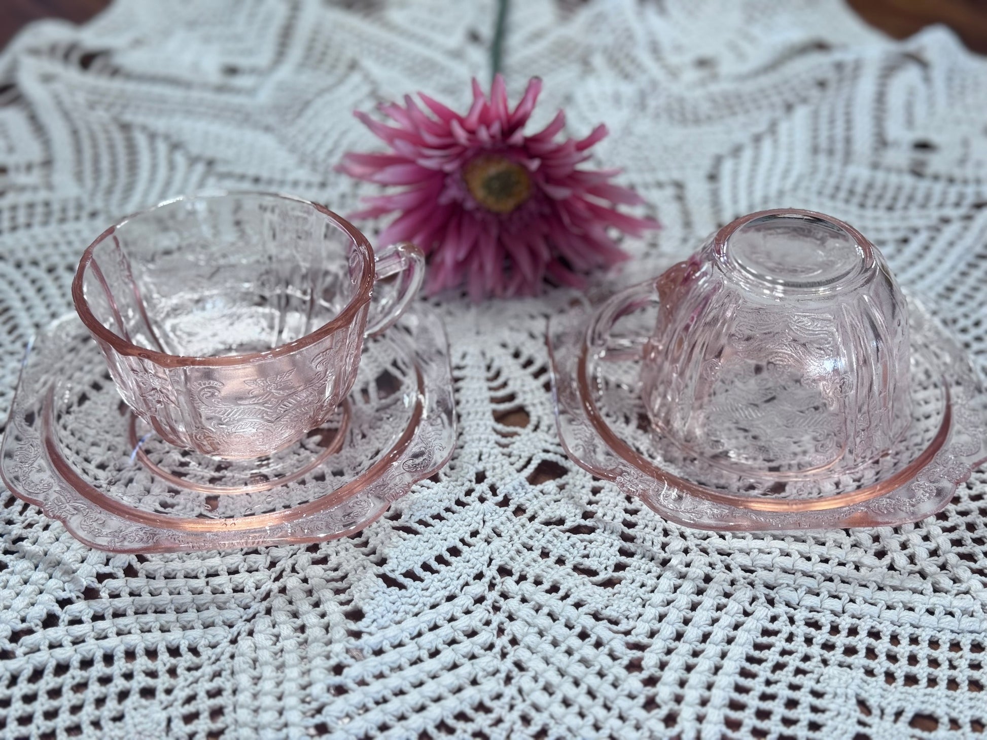 This is a lovely vintage 1930s set of 2 Federal Glass Madrid Pink Teacup and Saucer Set. Perfect for collectors and or for your serving and entertaining needs, adding charm and beauty.