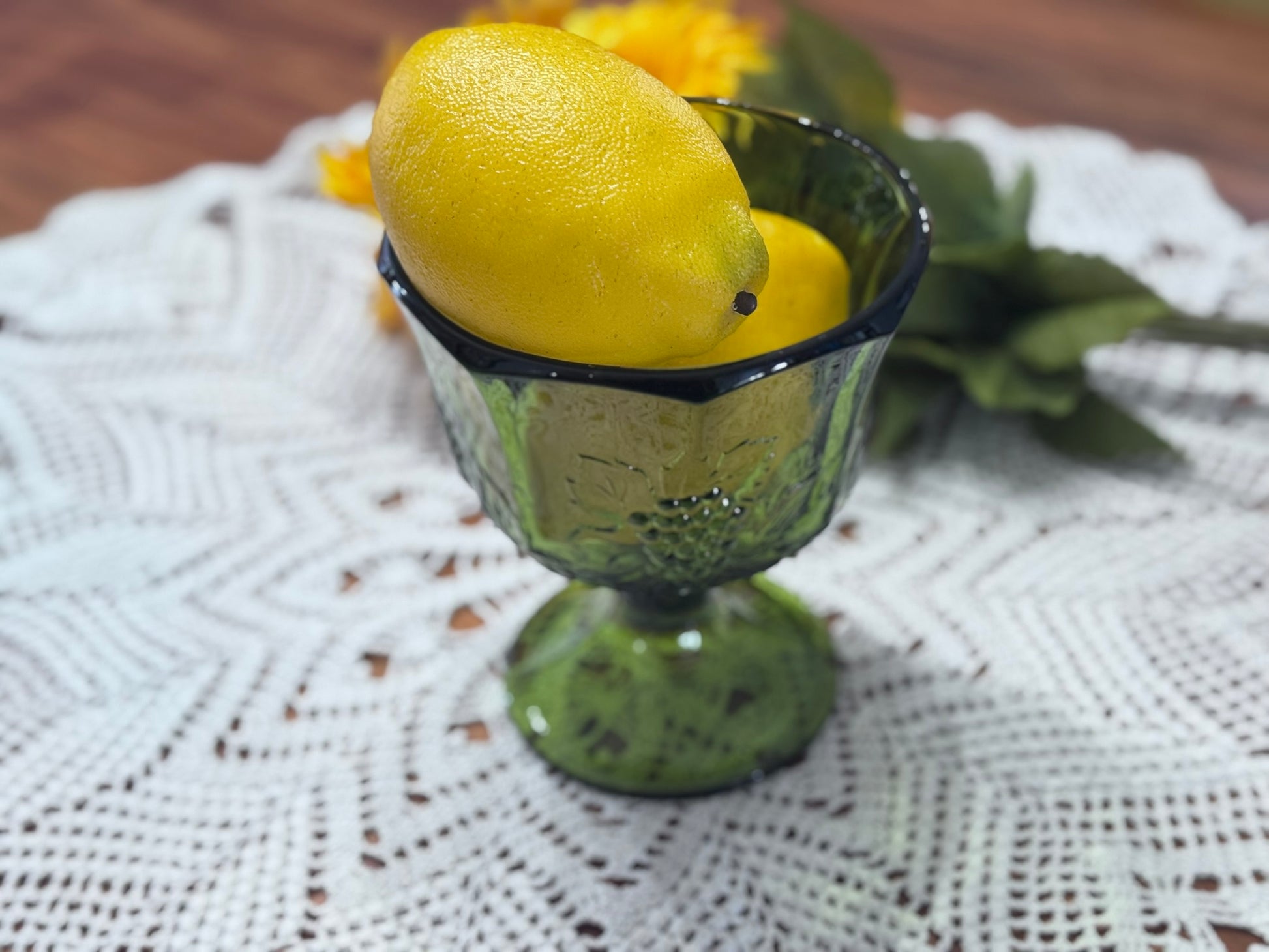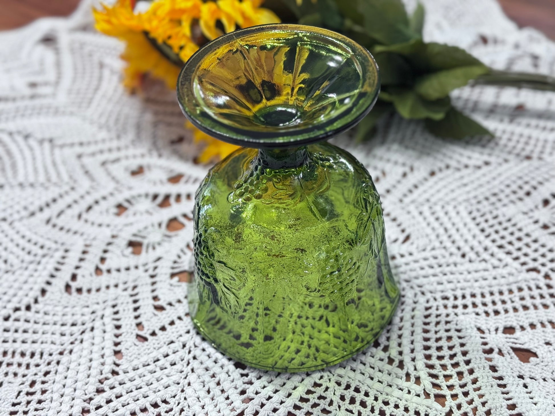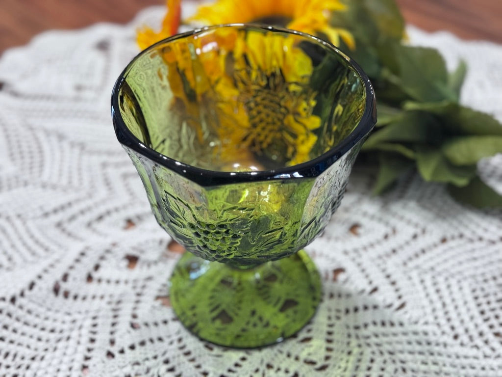 This is a lovely vintage Indiana Green Glass 'Colony Grape' Pedestal Pressed Glass Bowl. A beautiful versatile piece to add to your collection and or decor.