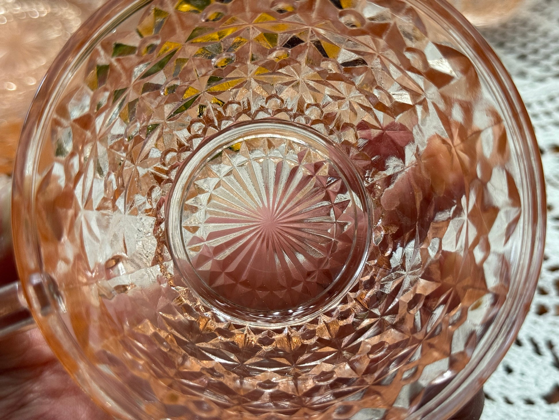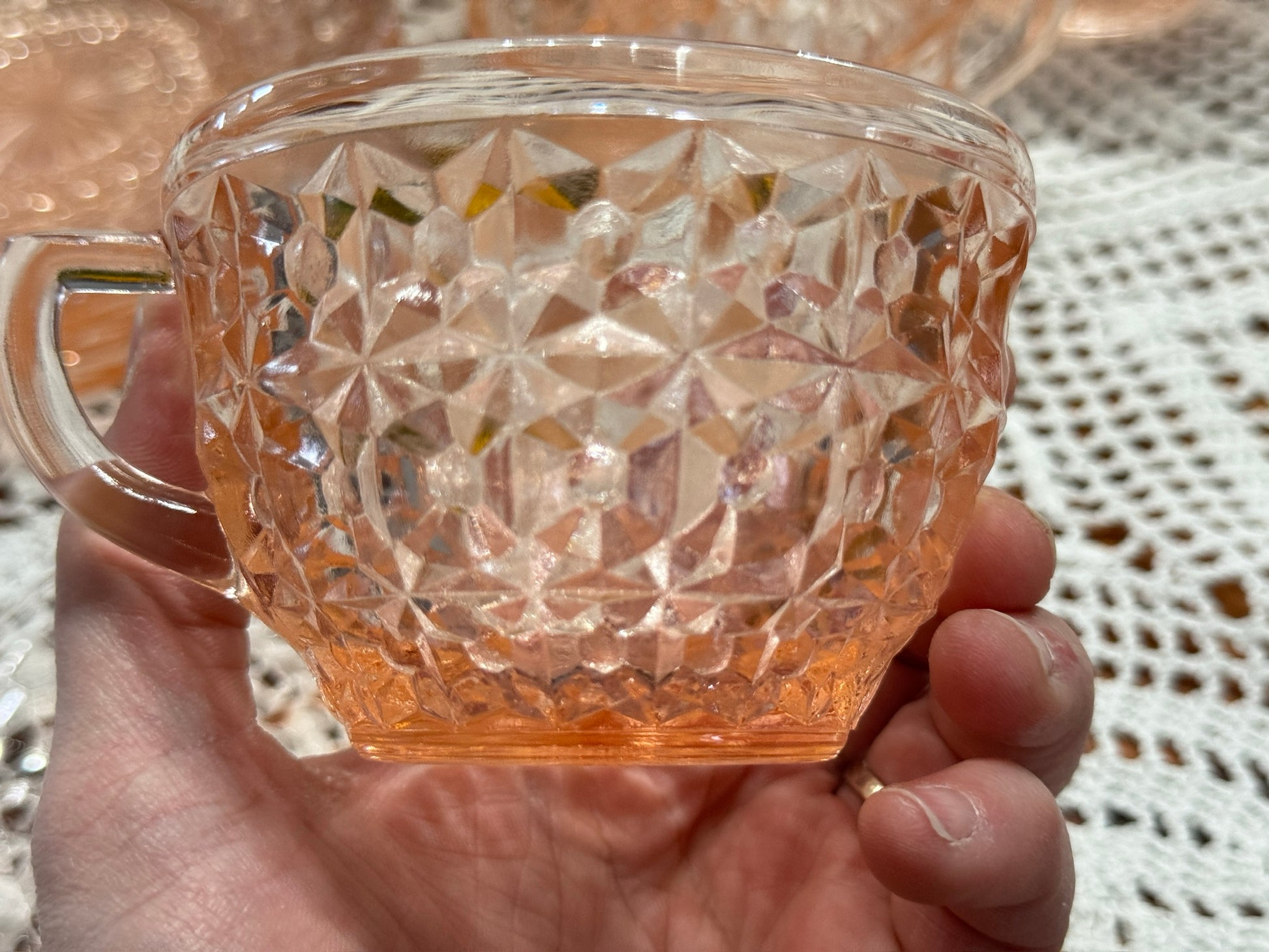 Pink Jeannette Depression Glass 'Holiday Buttons and Bows' Teacup & Saucer Set