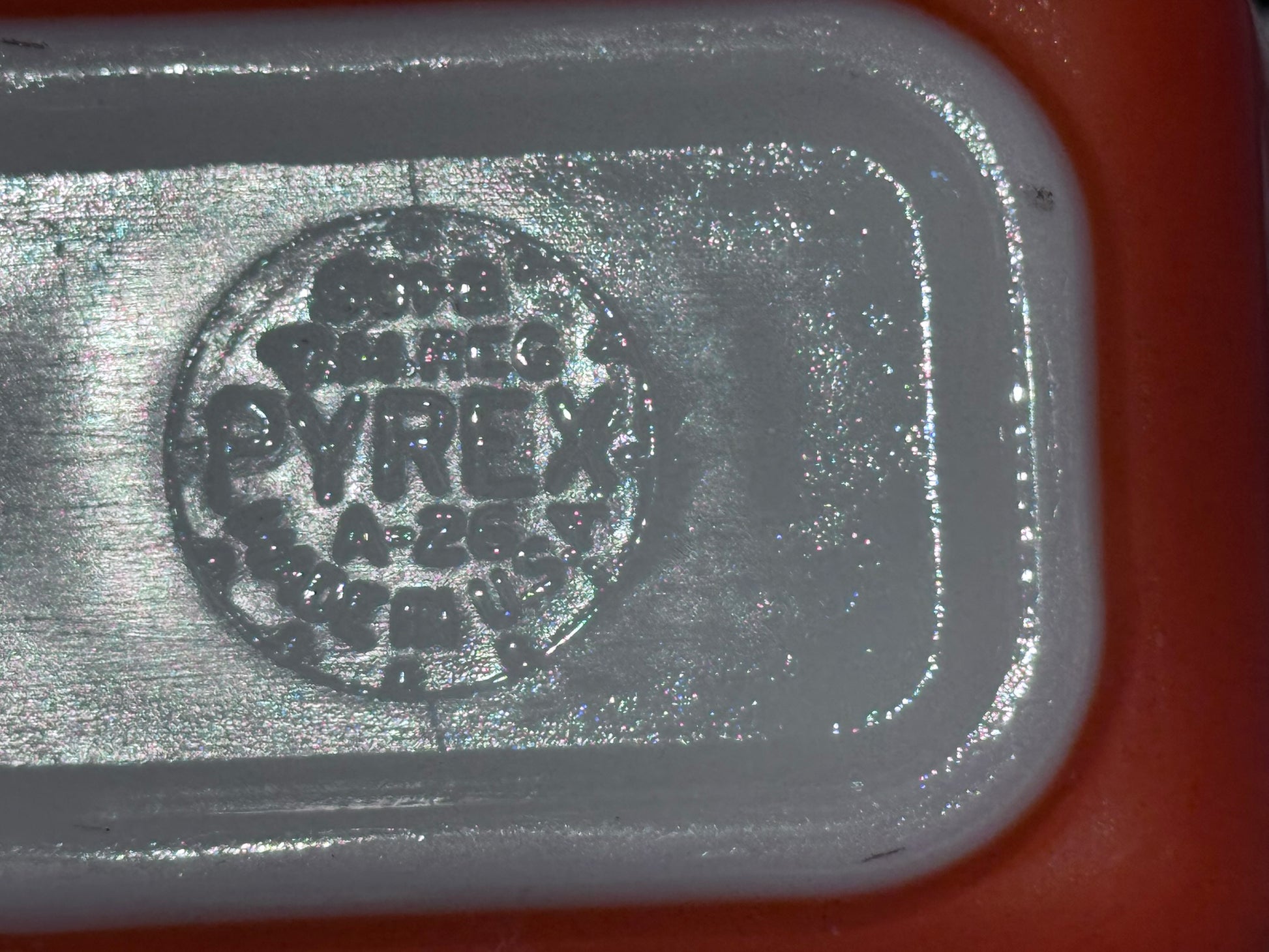 This vintage marked "PYREX 501-B, Made In U.S.A." Red/Orange Refrigerator Dish. A perfect piece to add to your collection and or kitchenware.