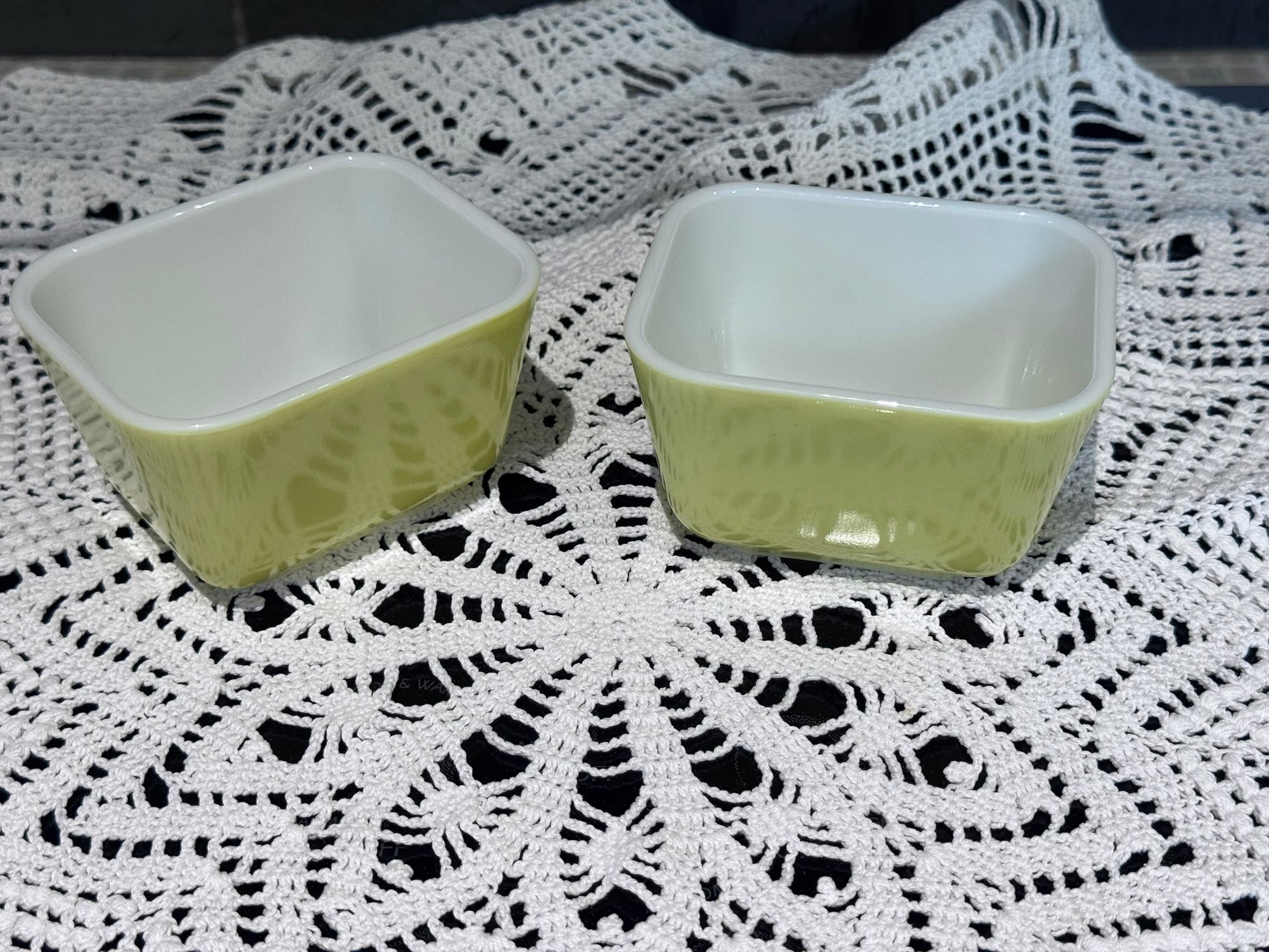 This vintage marked "PYREX 501-B, 1 1/2 Cups, Made In U.S.A." Yellow Refrigerator Dish. A perfect piece to add to your collection and or kitchenware.