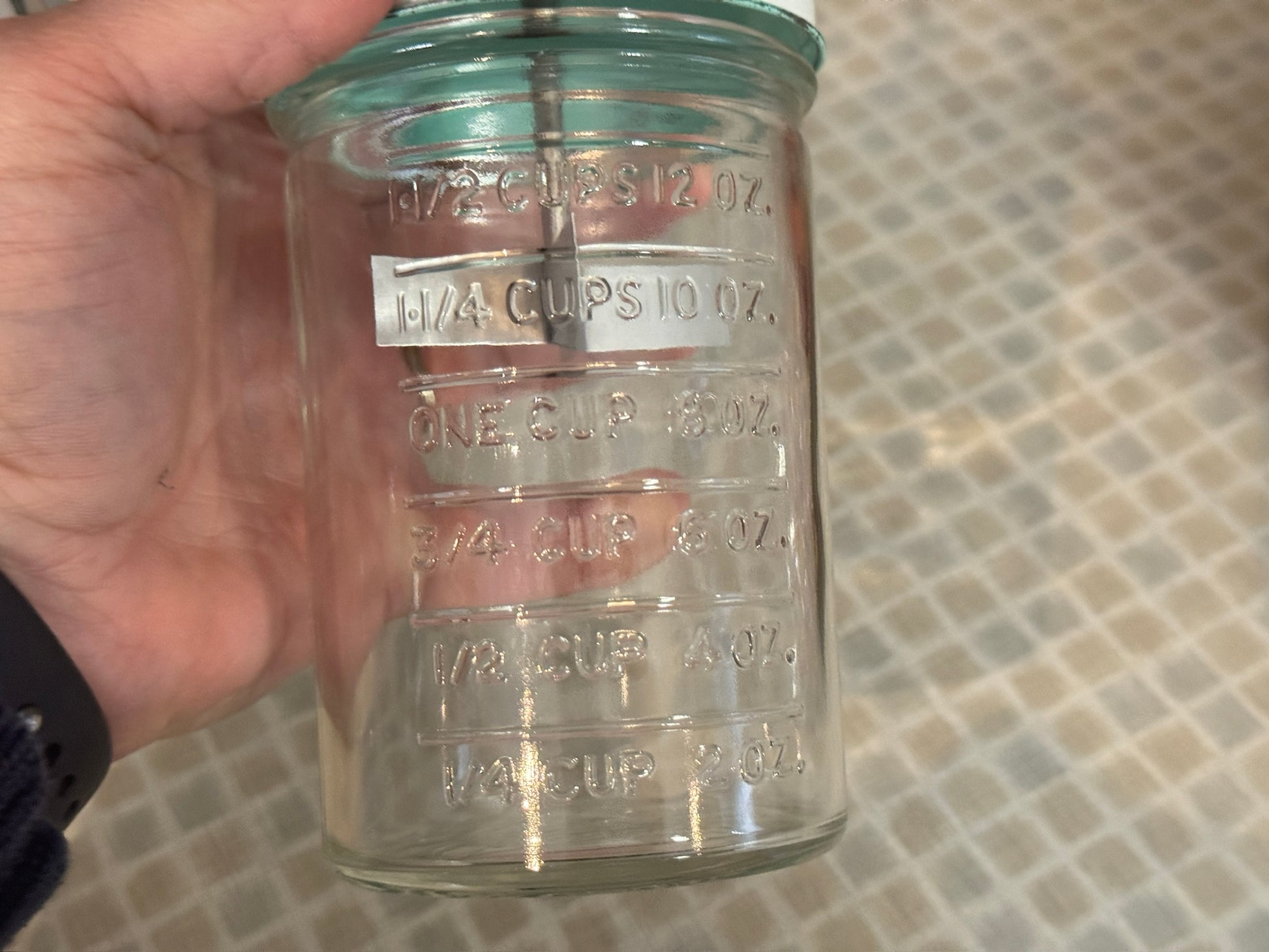 This is a lovely vintage marked "Androck, Made In Canada" Hand Food Chopper. This is a fun addition to any kitchen with its functionality and charm. Glass jar measures 12 OZ or 1 1/2 cups with screw on metal lid.