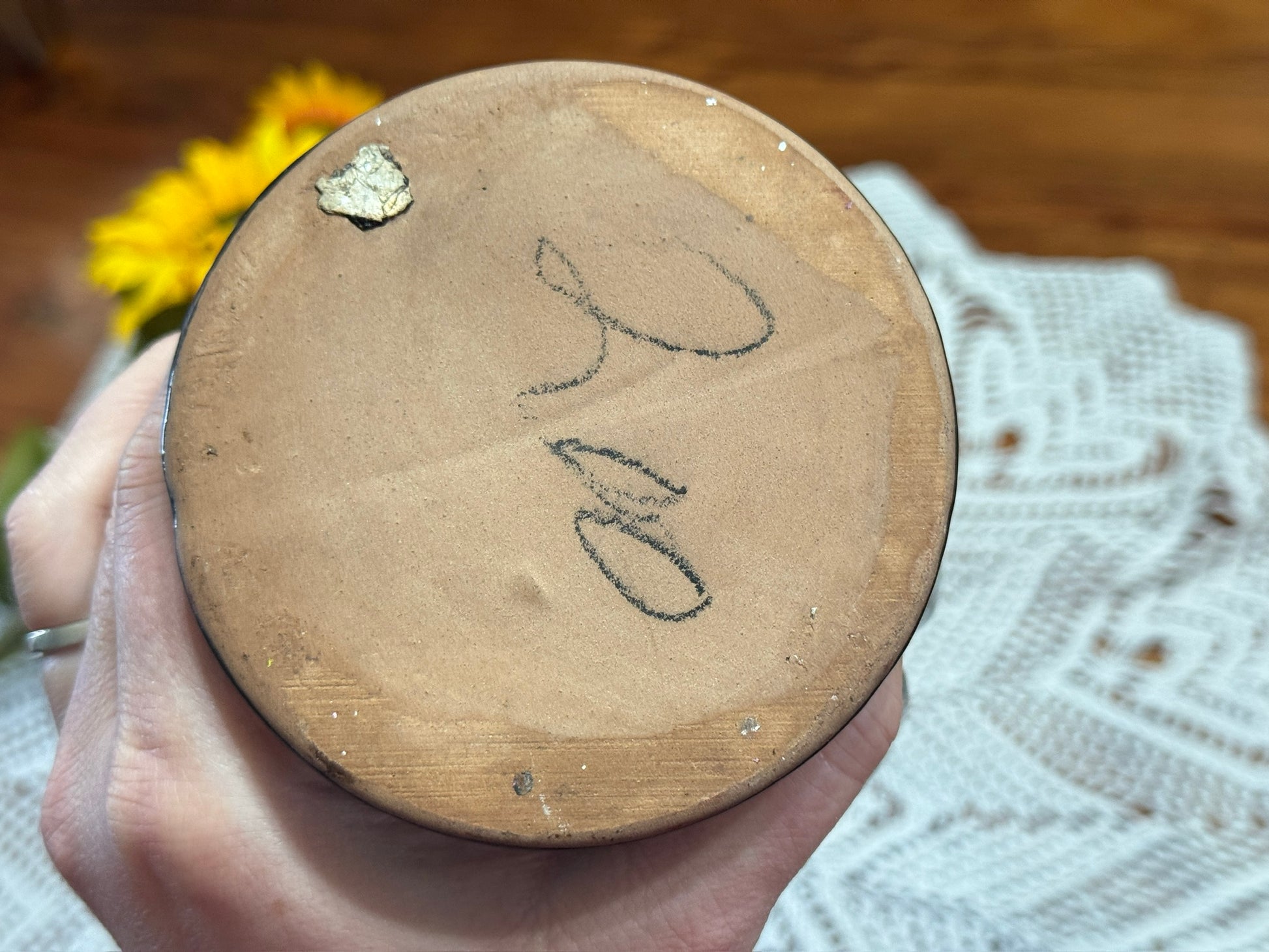 This is a lovely unmarked vintage orange and black Drip Glaze Long Neck Vase. A beautiful piece to add some vintage charm and nostalgia to your space.