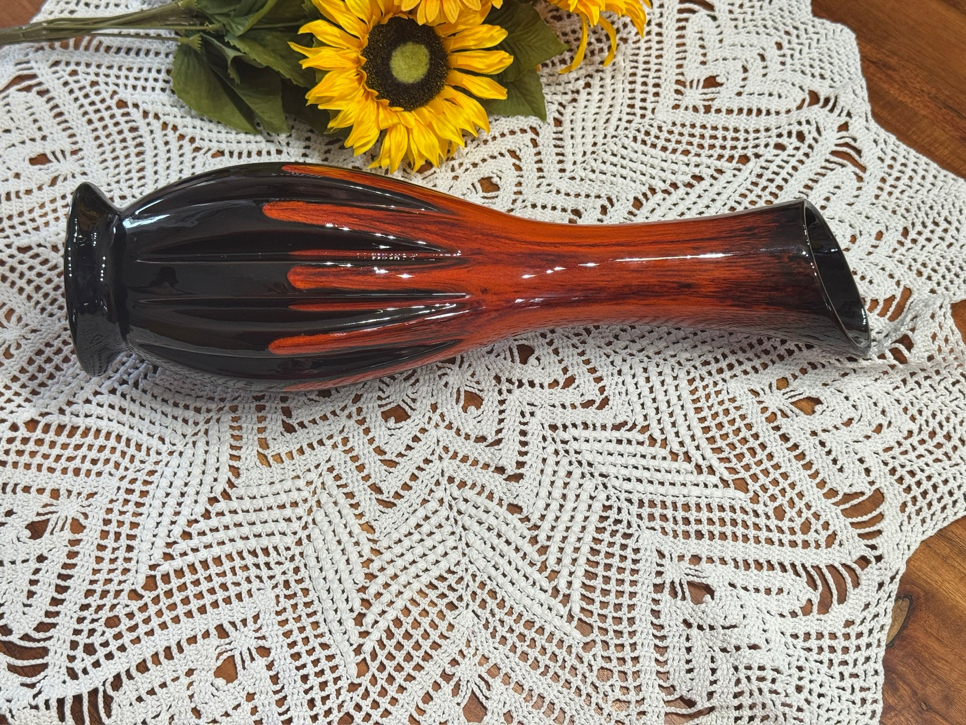 Vintage Orange/Black Drip Glaze Long Neck Vase