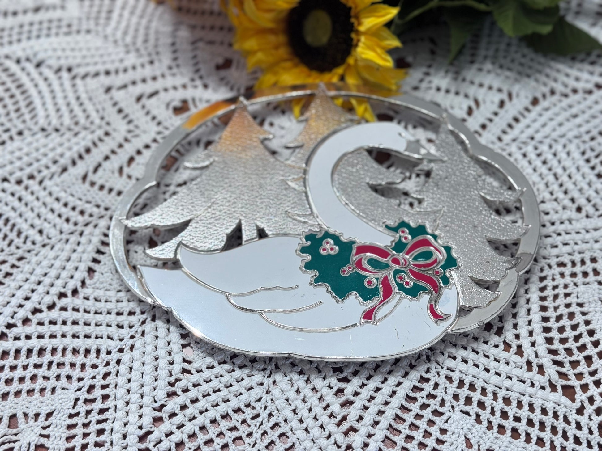 This is a lovely vintage marked "WM.A. ROGERS LTD." Silverplate Christmas Swan Trivet. A beautiful piece to add some vintage flair and elegance to your space.